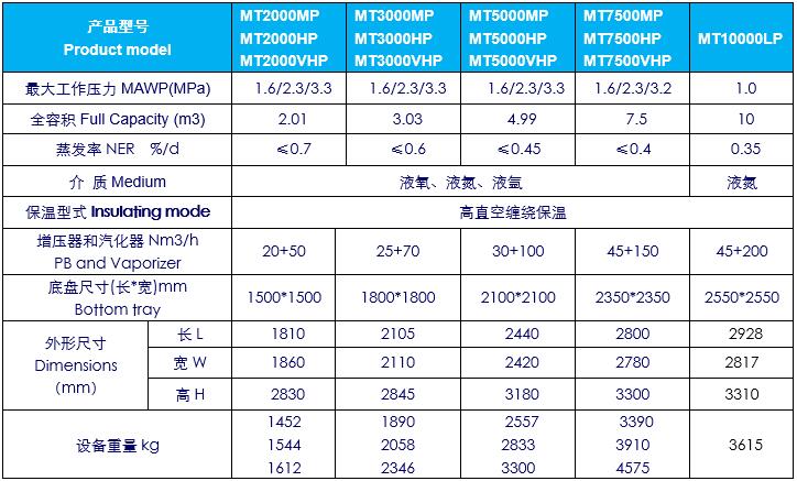 存貯介質Medium::液態(tài)氧、液態(tài)氮、液態(tài)氬、液態(tài)二氧化碳、液化天然氣Lox,LIN,Lar,LCO2,LNG,